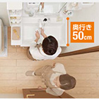 行き50cmの省スペースですれ違いもスムーズに。さらにサイドキャビネットを組み合わせれば収納物もスッキリと収まります。