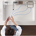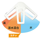 レバー中央位置で水を優先して吐水し、水と湯の境にクリック感を設けることで、湯水を使い分けて、ムダなガスや電気の使用を防ぎます。