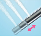 ステンレスノズル本体を洗浄水で除菌洗浄。汚れが気になるノズルを約1分間洗浄します。