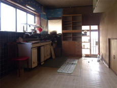 | 荷物を片付けてスッキリとした状態です。台所は横に長く、ダイニングキッチンで動線も食事スペースとしても非常に悪かったです。 |