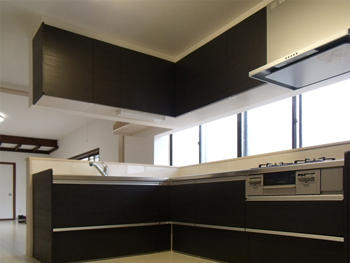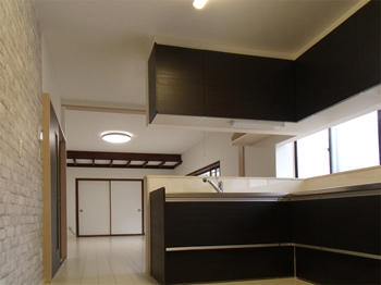| L型キッチンで対面に設置し広い部屋を見渡せるように配置しました。 | 既存の飾り天井部分を残し、白いクロスとの色のバランスも良くなったと思います。 |
