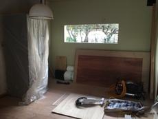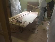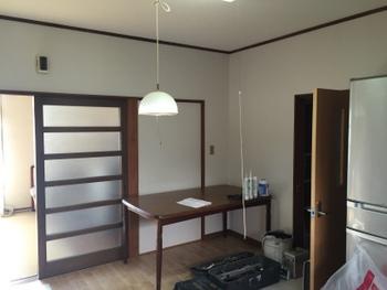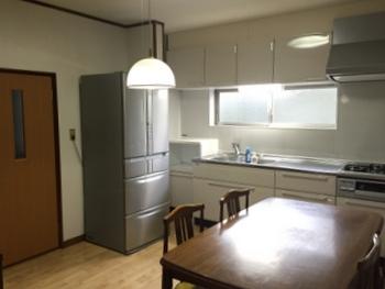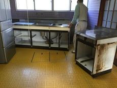 | 既存のキッチン解体です | ほこりが飛ばないように注意しました | 冷蔵庫が傷まないように養生します |