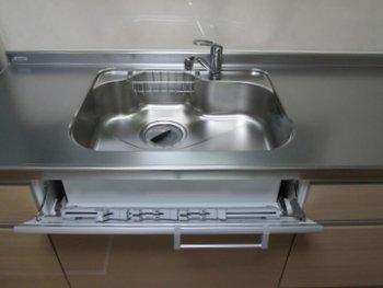 | 引き出しタイプのシステムキッチンです | ステンレストップで掃除が簡単 |