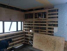| 壁は下地から直します | きれいに仕上げていきます | ボード貼り完了です |