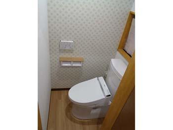 | トイレはピュアレストQRを設置 | クロスもポイントで一面を柄物にしました |