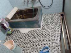 | 昔ながらのタイルの浴室でした。 | 以前からのトイレには床下がない為、床板が傷んでだわついていました。 | |