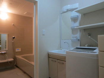 | 暖かくて使いやすいユニットバスです | 洗濯機の植えには可動棚を提案しました |