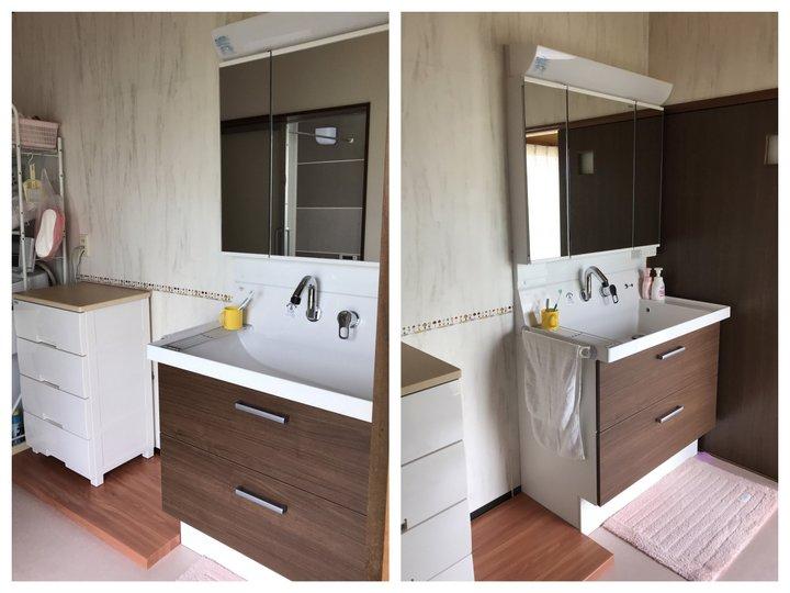 - 『最新の洗面化粧台は収納がたっぷり』洗面台取替 安来市S様邸