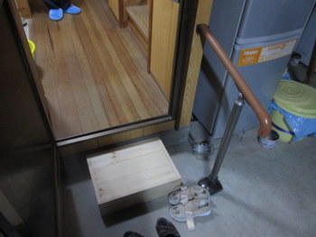 | 踏み台で上がりやすくなりました | 手すりがあるとずいぶん違います |