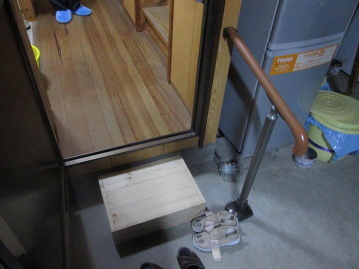 踏み台と手すりを提案しました。手すりがあるだけで使い勝手はずいぶん良くなります。 |