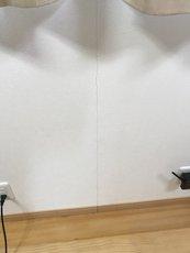 | 窓と窓の間に壁が入ります | 真っ白いクロスです | ドアは二つあります |