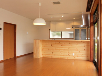 | こちらが施工完了後の様子です。 | キッチンは対面式なので、お子様の顔を見ながら調理ができます。 |