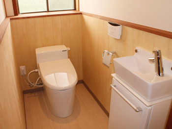 | ウォシュレットも取り付け、清潔なトイレになりました。また、極力段差を減らす方向でリフォームを行いました。 |
