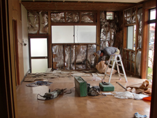 | こちらが施工中の様子です。 | リビングはキッチンを撤去し、全面改装を施します。 | 後々家電や家具を入れることを考慮して、広いスペースの確保に努めました。 |