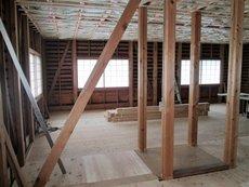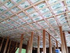| 工事中の片付けも怠りません | 防音、断熱用のグラスウールを敷きこみます | 床も手作業で仕上げます |