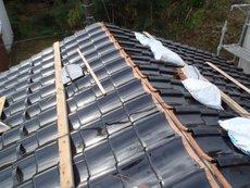 | 既存瓦撤去 | 昔の屋根は土で固めてあります | 防水シートも張って万全です |