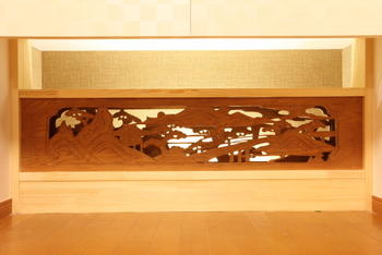 | 壁には収納スペースを多く取りました | 思い出の欄間を壁に埋め込みました |