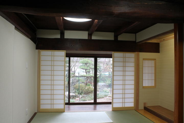 | 重厚な梁と新しい障子がよい雰囲気です | リビングの壁はホワイトで統一しました |