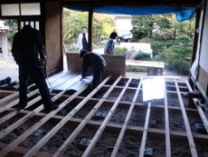 | 床は下地から直しました | 新しく壁を設置しました | 建具も使えるものと新設を分けて考えました |
