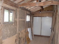 | 今のままでは住めない状況です | 玄関周りが古くて暗かった | 壁には筋交いを入れて強度的にも大丈夫なように補強しました |