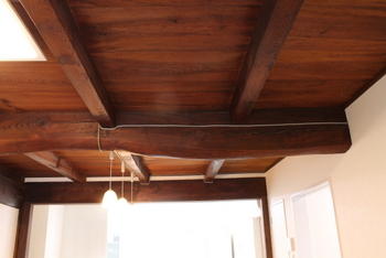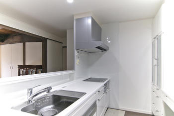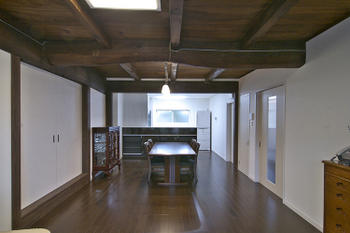 古いですが立派な梁が使ってありました。この梁を見せる事で重厚で落ち着いた空間が実現しました。水周りは使い勝手の良い商品を厳選して提案させて頂きました。 |